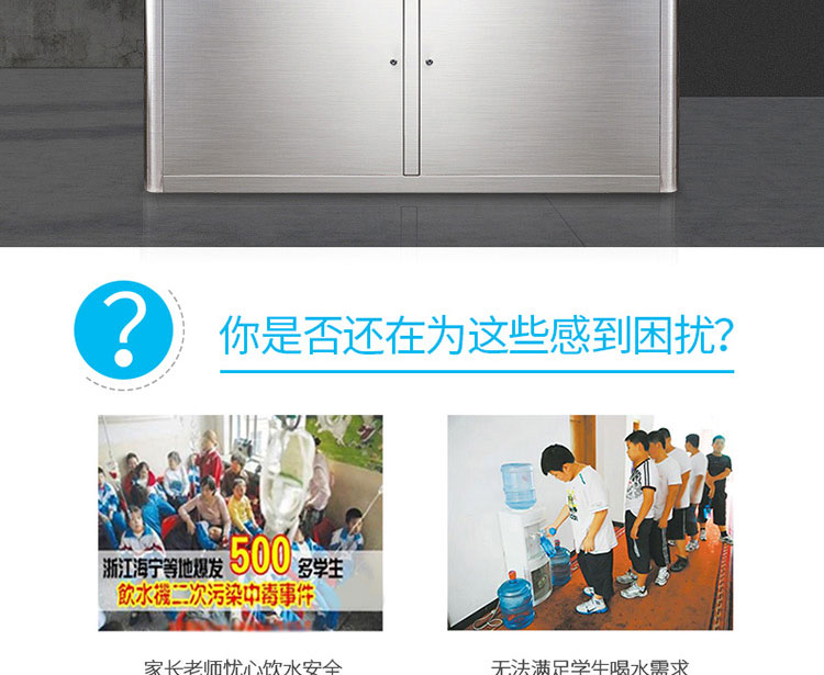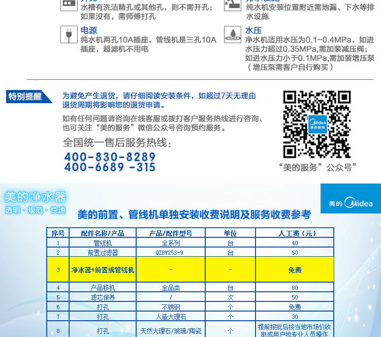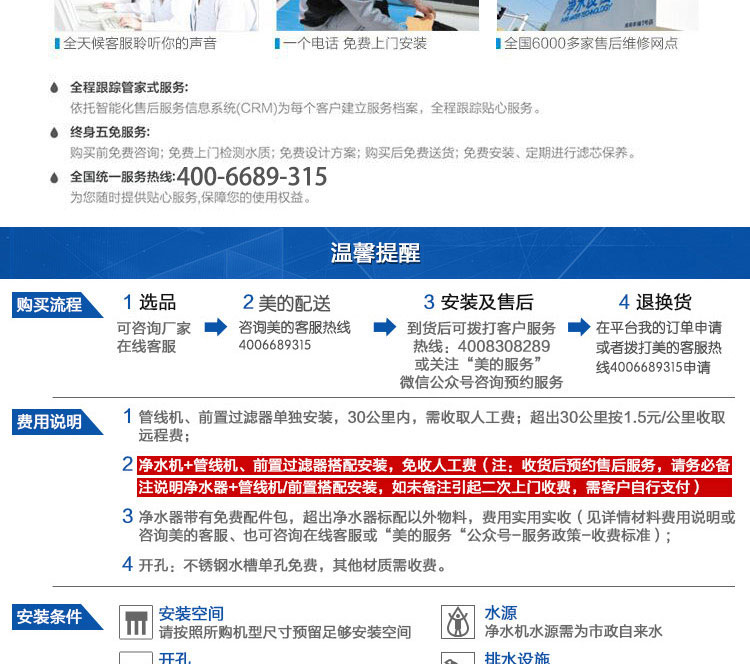 包裝清單"商用凈水機1臺; 使用說明書1本; 服務(wù)安裝單+客戶服務(wù)卡1份; 門鑰匙2把、調(diào)節(jié)支撐腳4個; 排水軟管1根; 4分波紋管1根; 排水管端蓋堵頭1個; 扎帶2根; 4分密封墊4個; 3角調(diào)溫鑰匙1把1 800G反滲透膜1支"
